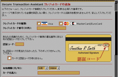 記入してあるとおり、カード裏の認証番号の下3桁を記入して下さい。