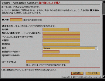 まず最初に購入額を記入します。銀行送金は$50からです。